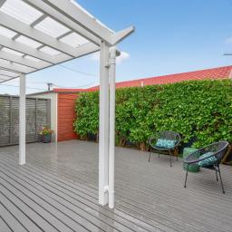 Outside, a private and sheltered deck is framed by established hedging and trees, creating a peaceful sunny retreat ideal for entertaining or relaxing. A verandah provides additional outdoor living and can be enjoyed year-round. The property is fully fenced, includes off street parking, and offers a large shed for extra storage.