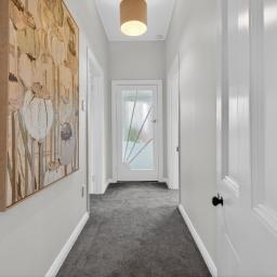 Step inside to high ceilings, fresh carpet throughout, and a welcoming entry into a light-filled haven.The two generous main bedrooms each feature large custom fitted wardrobe systems with excellent overhead storage, while the third bedroom offers valuable flexibility - ideal as a home office, guest room, or nursery. The hallway also provides convenient foldaway stair access to a practical attic storage space.