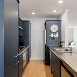 • Modern kitchen with gas cooking and generous storage.