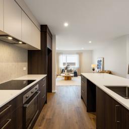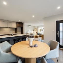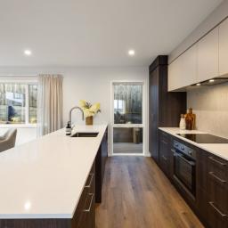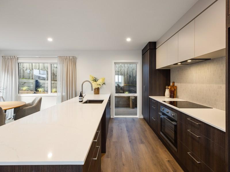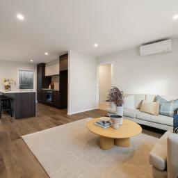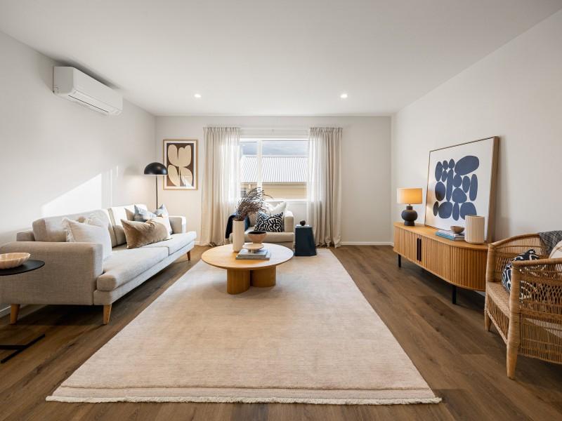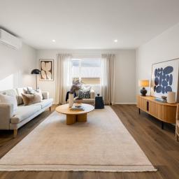 At the heart of the home, the stunning kitchen is a true showpiece, featuring sleek stone benchtops, an induction cooktop, and quality finishes that elevate everyday living. The adjoining dining area flows effortlessly to the outdoor entertaining deck, creating an inviting space for alfresco meals, summer gatherings, or simply unwinding in the evening sun. Welcoming lounge is warmed by a heat pump and enhanced by double glazing and luxury vinyl flooring, ensuring year-round comfort and a refined, modern feel.