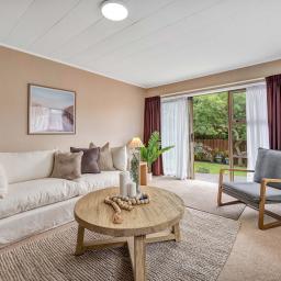 Quietly positioned back from the road, this spacious low-maintenance brick home delivers comfort, privacy, and an easy Westown lifestyle. Double glazed throughout, it offers a warm and peaceful setting with a bright living room, heat pump, and seamless outdoor flow for summer living. The kitchen is generous with excellent storage and connects well to the dining area, while two good-sized bedrooms and a recently refreshed bathroom add everyday ease. A sunny conservatory provides a lovely welcome, and the fully fenced backyard is a real bonus — flat lawns, established trees, birdsong, and a relaxing patio. Internal-access garage, off-street parking, and a central location opposite Yarrows Stadium complete the picture. Contact Darrell 0274 937 134 to arrange a viewing today.