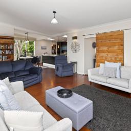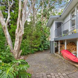 Surrounded by established native bush, the home offers a tranquil natural setting with a nearby bush track and easy access to beach and waterfront walks, creating a true coastal lifestyle feel.