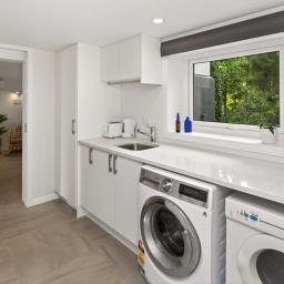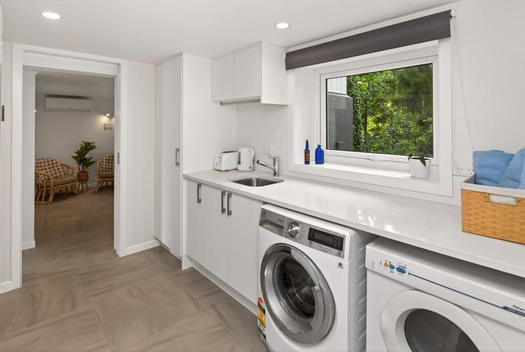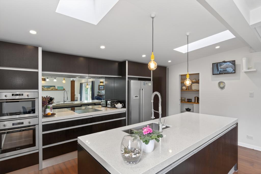 This space flows effortlessly to a sun-soaked deck and swimming pool, creating the perfect setting for long summer days, relaxed entertaining and easy family living. The modern kitchen features a scullery, a study nook and opening skylights, while an accessible family bathroom, master bedroom and two further bedrooms complete this level.