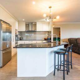 At the centre of the home, the modern open-plan kitchen and living areas are designed to connect - framing stunning views while keeping family and guests together. It's a home that works just as beautifully for everyday life as it does for entertaining.