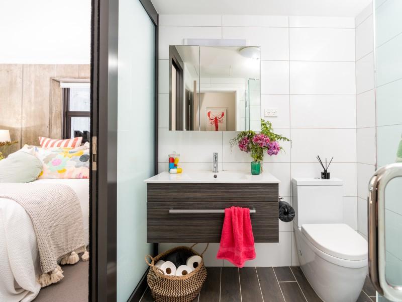 The bedroom is generously sized, the bathroom sleek and modern, and the overall layout feels well resolved and comfortable for everyday living.