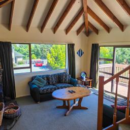 Wraparound decking & elevation of the living area ensures light, warmth & views of shimmering Lake Tekapo & its surrounding mountain vistas. The upper-level living area is further complimented by a high timber atrium feature ceiling & a log burner keeps it cosy during the cooler months