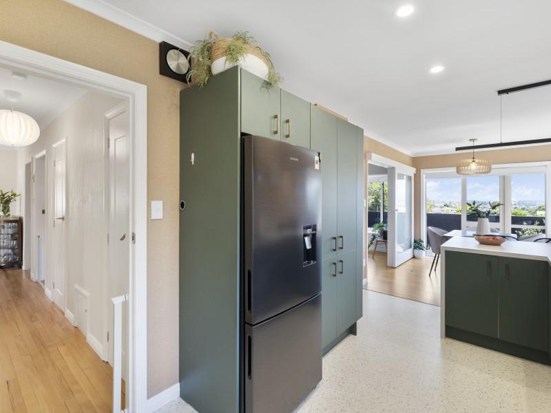 At the heart of the home is a light-filled open plan kitchen, dining, and living area that connects effortlessly to a fantastic entertainers’ deck. This is a space made for hosting friends, family barbecues, or simply unwinding at the end of the day while enjoying the outlook. The kitchen is a real highlight, featuring modern finishes, excellent storage, and a generous walk-in pantry that adds both practicality and everyday ease.