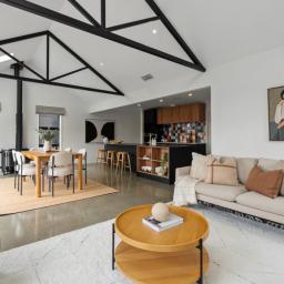 Positioned on a flat, elevated section, the home is flooded with natural light, creating bright, uplifting spaces from morning through to evening. The floor plan has been cleverly arranged with living at one end and bedrooms at the other, offering separation, privacy and easy flow for busy households.