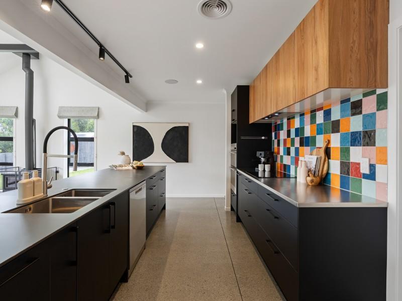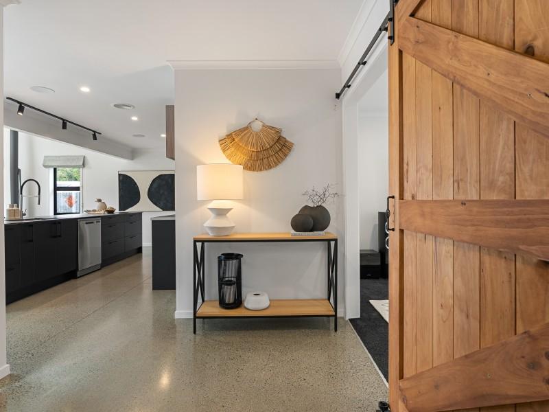 Comfort and efficiency are front of mind, with central ducted heating and cooling, a cosy woodburner, solar panels, inverter, and a Tesla Powerwall 2 battery system. Built-in speakers in the living area, ample storage throughout, and a double internal access garage with integrated laundry further enhance everyday convenience.