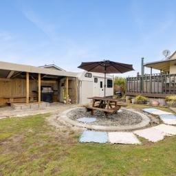 Out the back, you'll find a large, extended double-door garage, ideal for multiple vehicles, a workshop, storage, or future possibilities.