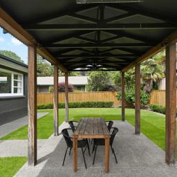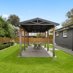 Outdoors, a generous alfresco area is set within beautifully landscaped gardens and manicured lawns, providing an inviting setting for summer dining and gatherings with family and friends.