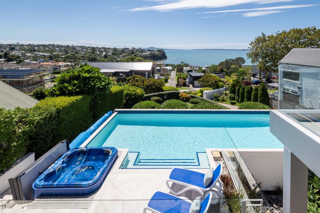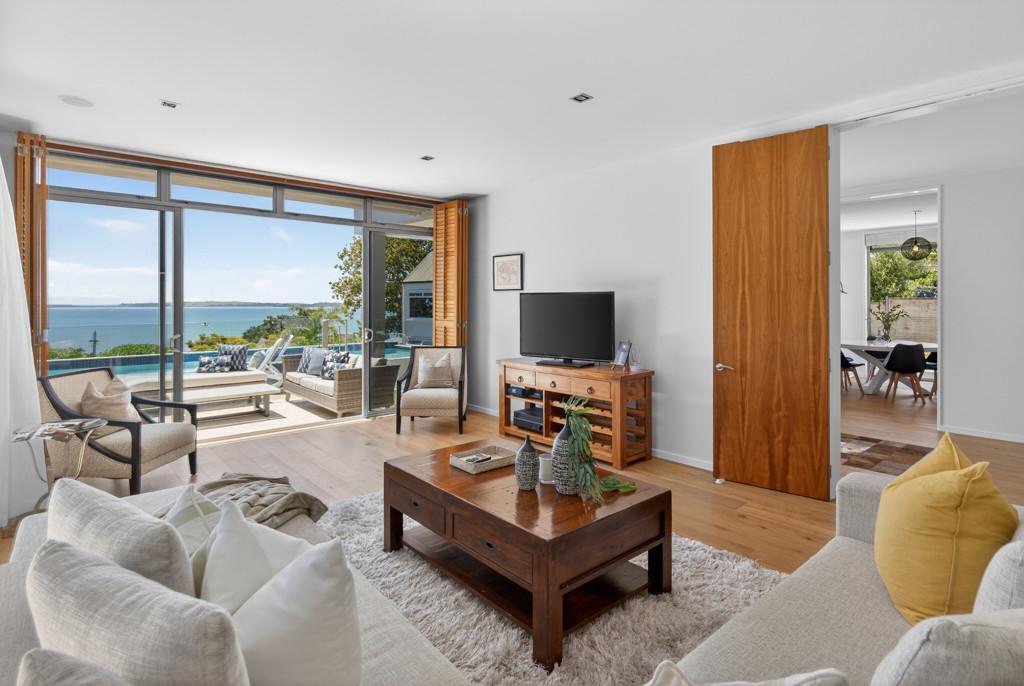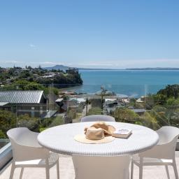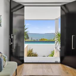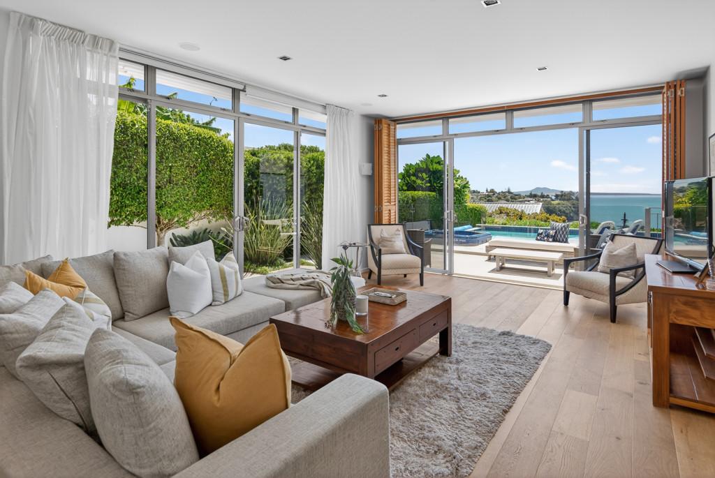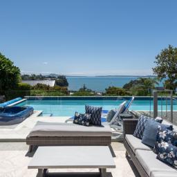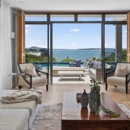 Tucked away in a peaceful, tightly held cul-de-sac in prestigious Cockle Bay, 7 Island View Terrace is a striking example of luxurious coastal living. Elevated and private, the home enjoys sweeping views across the water to Rangitoto Island from every north-facing room, where design, light and landscape align seamlessly.