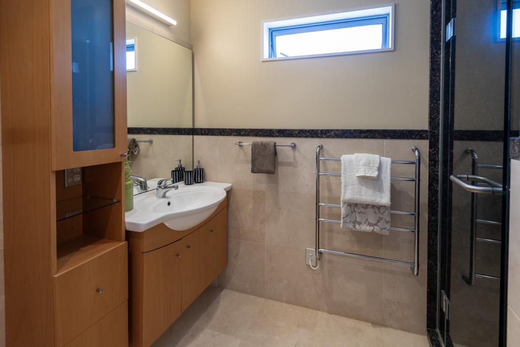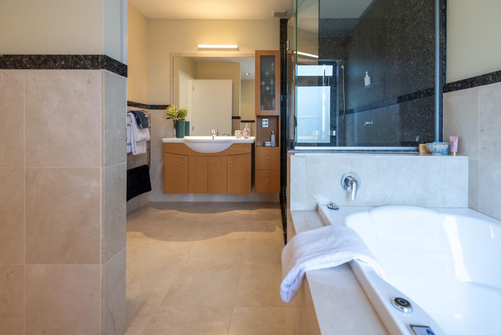 Constructed from natural stone, concrete and travertine, the home showcases timeless architectural design. Year-round comfort is assured with underfloor heating installed throughout the home, while the lounge is kept warm and inviting by a heat pump.