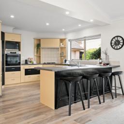 Accommodation is well considered. The main bedroom connects with the outdoors and is supported by a walk-in wardrobe and a recently renovated ensuite, stylishly appointed with a fully tiled shower and a backlit arched mirror. Three further bedrooms are generously proportioned and are serviced by a full family bathroom, with a separate toilet and hand basin for added convenience. Double internal access garaging rounds off the floor plan nicely.