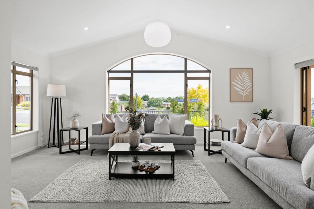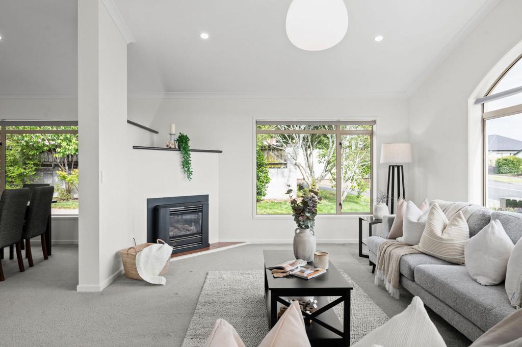There is a quiet assurance to this home. Set within an established Rototuna streetscape, the rendered brick exterior sits comfortably behind mature planting and lush green lawns. The palette is modern and restrained. Everything feels settled.