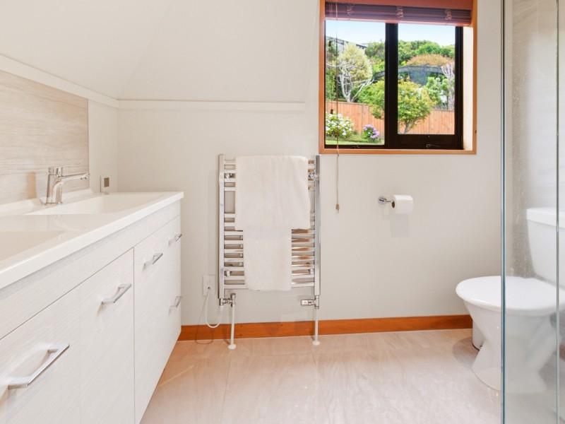 - Designed for warmth, comfort and natural light, featuring radiator central heating throughout, polished floorboards, rimu joinery, extensive glazing, and underfloor heating in both the main bathroom and master ensuite