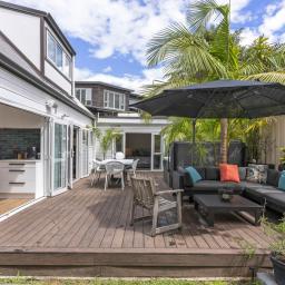 Looking for a home only moments to the beach, boardwalks and restaurants but not the banter and bustle of waterfront Mission Bay? Then come and check out this four-bedroom, two-bathroom weatherboard home, set well off the road right next to a reserve. With two bedrooms up and two down (master with an ensuite), it is well configured for family living or perfect for an Auckland bolt hole. The kitchen and dining area opens out to a large westerly deck and outdoor garden area - perfect for summer BBQ's and an evening spa. With a new roof and a freehold title, this home makes living in the heart of Mission Bay an excellent option.