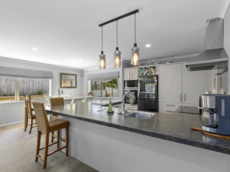 The home's interior shines with plenty of natural light, enhancing the warm ambience. The generously sized living and dining spaces flow effortlessly, encouraging a vibrant family lifestyle. The well-appointed kitchen, perfect for culinary enthusiasts, is designed for both functionality and style, making mealtime a delightful experience.