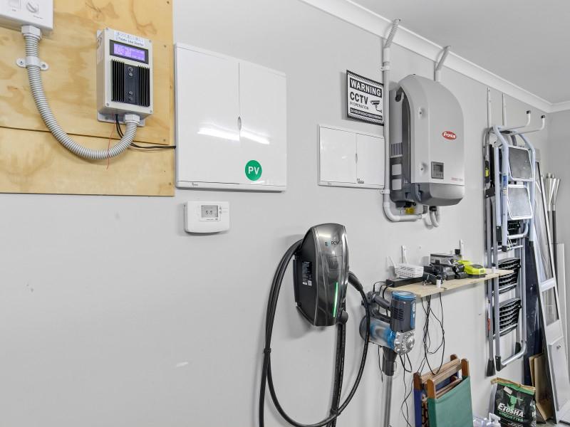 For those with vehicles, the convenience of a double garage with remote control access cannot be overstated. It includes the Paladin solar heating diverter panel, a fantastic feature that highlights the home's energy-efficient design, helping you maintain lower utility bills while contributing to a greener environment. EV drivers do not despair as the garage is also fitted with an EV power charger.