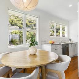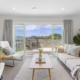 The generous living area is light-filled and inviting, opening directly to a sun-drenched deck that's ideal for relaxing or entertaining while enjoying the outlook. This space links seamlessly with the modernised kitchen and dining area, forming a practical, well-connected layout that works effortlessly for daily life.