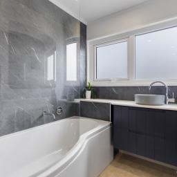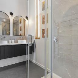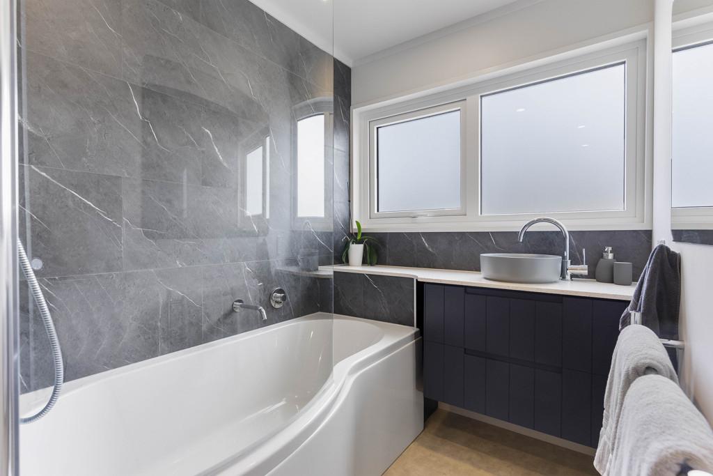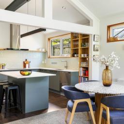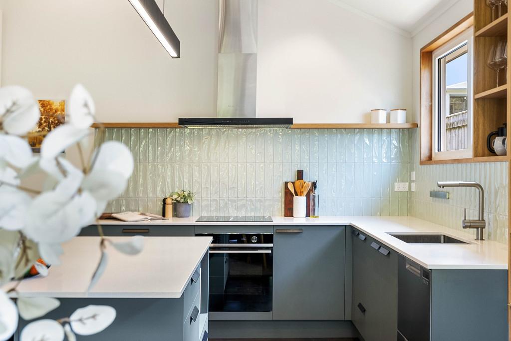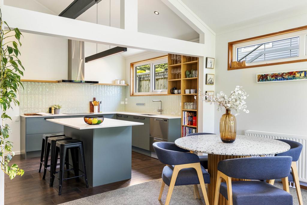 At its heart is a spacious, airy, light-filled living space, enhanced by vaulted ceilings that make this home something special. The open-plan kitchen and dining area forms the central hub of the home, designed for both daily living and entertaining. The kitchen is a standout, featuring engineered stone benchtops, an induction hob, quality appliances, a striking tiled splashback, with a breakfast bar that adds both functionality and character. Seamless flow from the living spaces to the outdoors makes the most of the sun and garden.