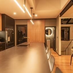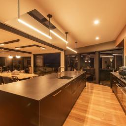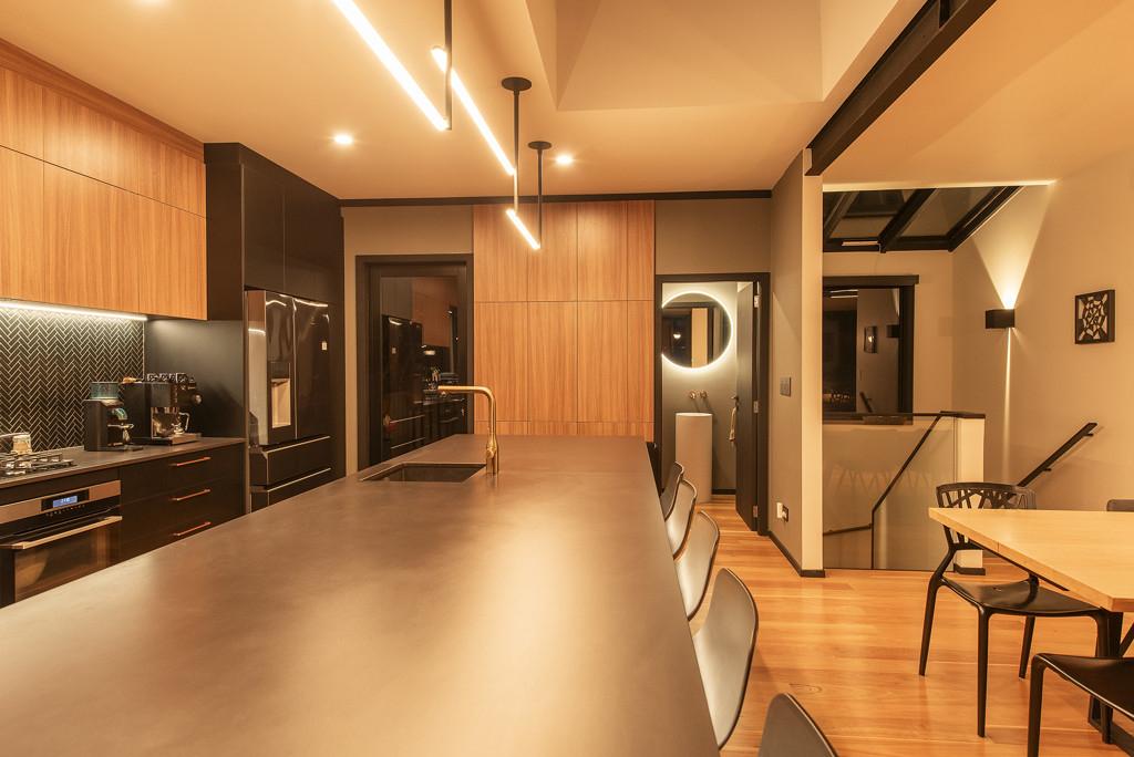 * Exquisite, state-of-the-art chef's kitchen with a large central island, premium appliances including a 6-burner gas cooktop, double fridge, and integrated wine fridge