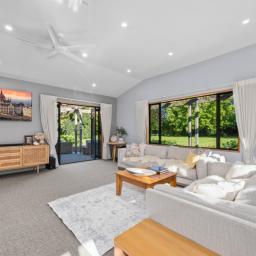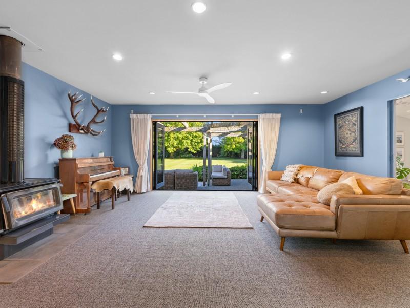 Double glazing, woodburners, heatpumps, ceiling fans and underfloor in two bathrooms ensure year-round comfort. A generous double carport features cupboards for storage, a separate garage provides more storage plus there is a three bay lockable workshop with three phase power, and an implement shed large enough for campervans or boats.