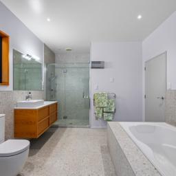 A large master bedroom including a new ensuite bathroom and walk-in wardrobe is on the eastern side of the house while the other side incorporates three more bedrooms and two bathrooms. There is an office, a separate guest lavatory and a laundry set in a handy backdoor utility area.