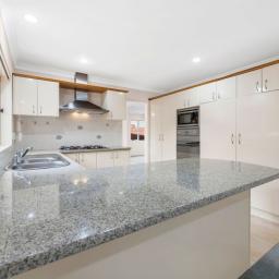 At the heart of the home, the spacious kitchen has been thoughtfully maintained, featuring generous cabinetry, a gas cooktop, and ample bench space that naturally draws people together. Flowing from here, the family room connects to a sun-soaked outdoor area, inviting weekend barbecues, laughter, and relaxed family time that turns ordinary days into lasting memories.