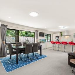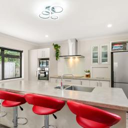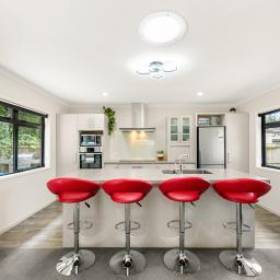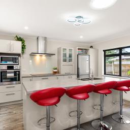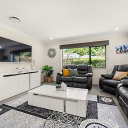 Designed with everyday comfort and easy entertaining in mind, the heart of the home is the generous open-plan kitchen, dining and living area. The sleek, modern kitchen features quality appliances, excellent storage and a large island bench with breakfast bar seating, perfect for busy mornings or relaxed evenings with friends. This space flows seamlessly to the private outdoor entertaining area, creating an ideal indoor-outdoor connection for summer BBQs and family gatherings.