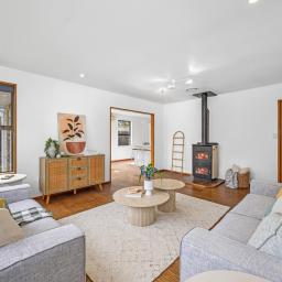Enjoy three generous double bedrooms featuring custom wardrobes, providing exceptional storage and organisation. Comfort is ensured year round with a fireplace, heat pump and HRV system, while the family bathroom and separate laundry add both convenience and functionality.