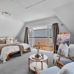 Set over two levels, the lower floor features a well-maintained kitchen and open plan lounge/dining area that opens seamlessly to a covered conservatory and deck - ideal for entertaining and relaxed summer living. Two bedrooms are located on this level, including a generous double bedroom with its own study or nursery, plus a separate bedroom and toilet with its own entrance, making it perfect for guests, extended family, or flatmate flexibility.