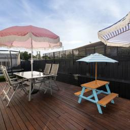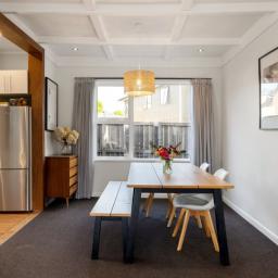 From first glance, the timeless façade and immaculate presentation set the tone for the character that unfolds inside. Timber flooring adds warmth underfoot through the kitchen, featuring gas cooking, a dishwasher, and generous cupboard space. Open plan dining and lounge area extend to the entertaining deck, offering effortless indoor/outdoor flow and an ideal setting alfresco dining.