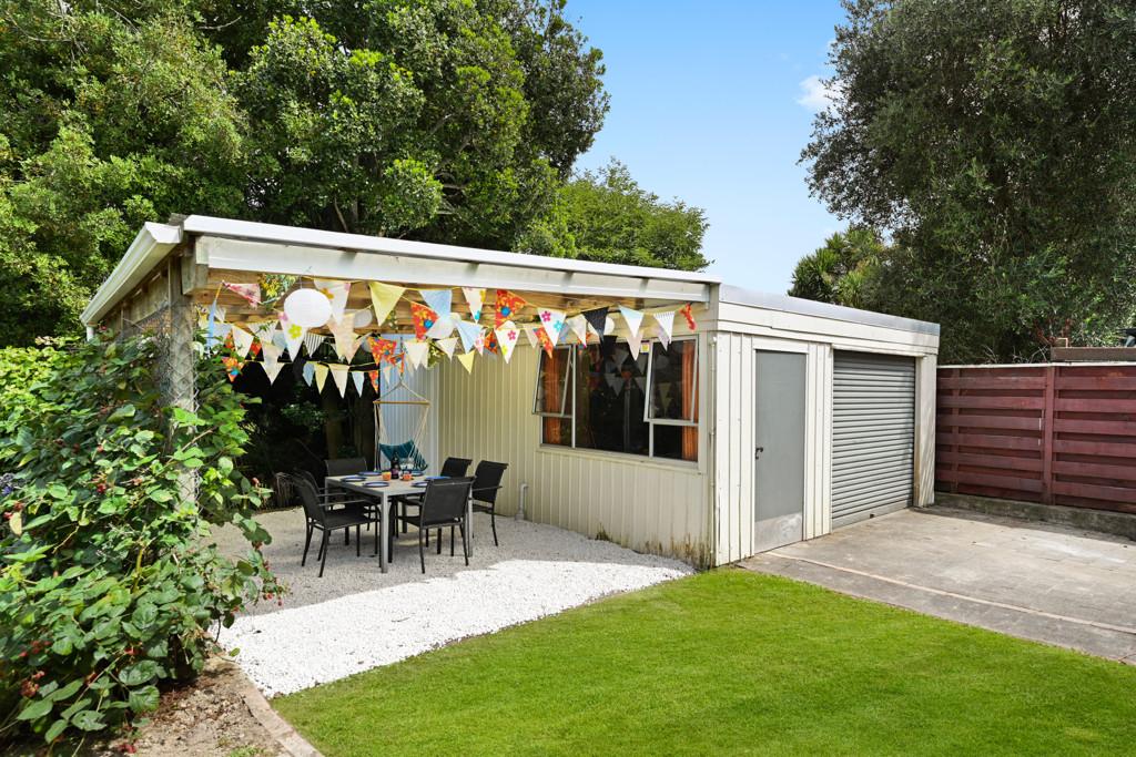 Set on a 918m2 freehold section, this property offers something truly special - a developed gully with established native trees including Totara, Rimu, Kowhai, Manuka, flax and Kawakawa (pepper tree). Relatively easy to maintain, this serene setting allows you to listen to the tui's, watch the fantails, and hear the moreporks at night. Tucked away within the gully is a large, private deck that creates an incredible entertaining space, surrounded by nature and perfect for hosting friends or enjoying peaceful evenings. The section is also a gardener's delight, boasting a prolific orange tree, grapes, thornless boysenberries, a vegetable plot, established berry vines and fruit trees, along with easy-care gardens around the home. An oversized detached single garage adds excellent storage and functionality, complemented by an additional outdoor dining area for relaxed summer meals.