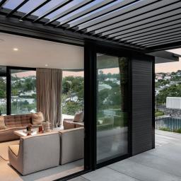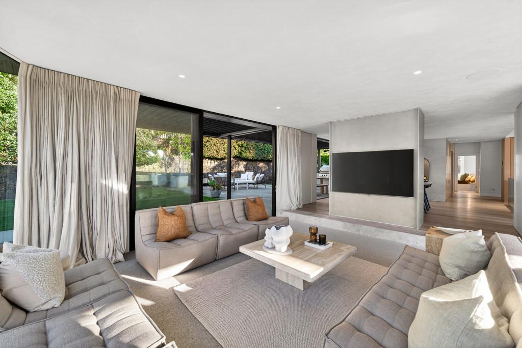 Outside, there are multiple areas to enjoy. A lawn and outdoor fireplace create relaxed settings for entertaining or quiet evenings, while an additional patio with adjustable louvres offers flexibility for all seasons. The heated swimming pool and spa are positioned to feel private and well connected to the house.