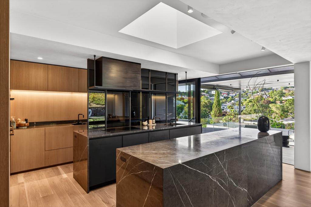 At the centre of the home, the kitchen is both refined and highly functional, with integrated appliances, generous storage, and a large scullery with a built-in study nook supporting everyday living.