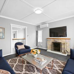 Accommodation includes a large master bedroom, supported by two additional bedrooms that are ideal for children or as flexible work-from-home spaces. An added bonus is the snug lounge, perfect as a kids' game room or a relaxing alcove for quiet downtime.