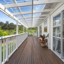 • Three bedrooms, two with in-built storage, all three opening to the deck