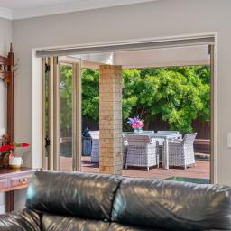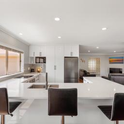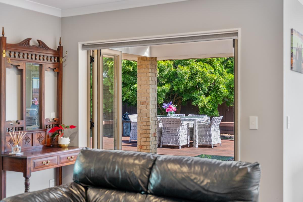 At the heart of the home, the newly remodeled open‑plan kitchen and dining area sets the tone with stone benchtops, high‑spec appliances, a Bosch cooktop and dishwasher, and a Smeg oven, a dream setup for those who love to cook and entertain. From here, the layout flows into a relaxed living space, with a second lounge beyond that can be closed off with double doors for added versatility, ideal for families, media nights or quiet downtime.
