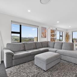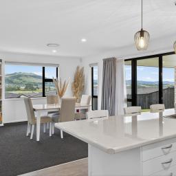 The heart of the home is the light-filled open-plan kitchen, dining, and living area, perfectly positioned to capture the stunning elevated outlook. Large windows frame the panoramic views, creating a beautiful backdrop for everyday living and entertaining.