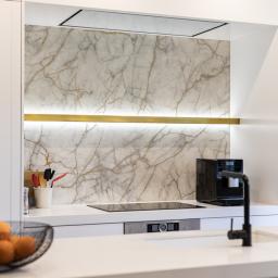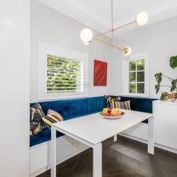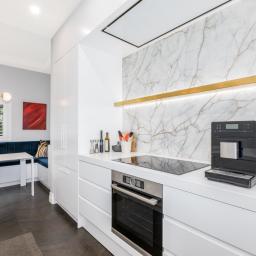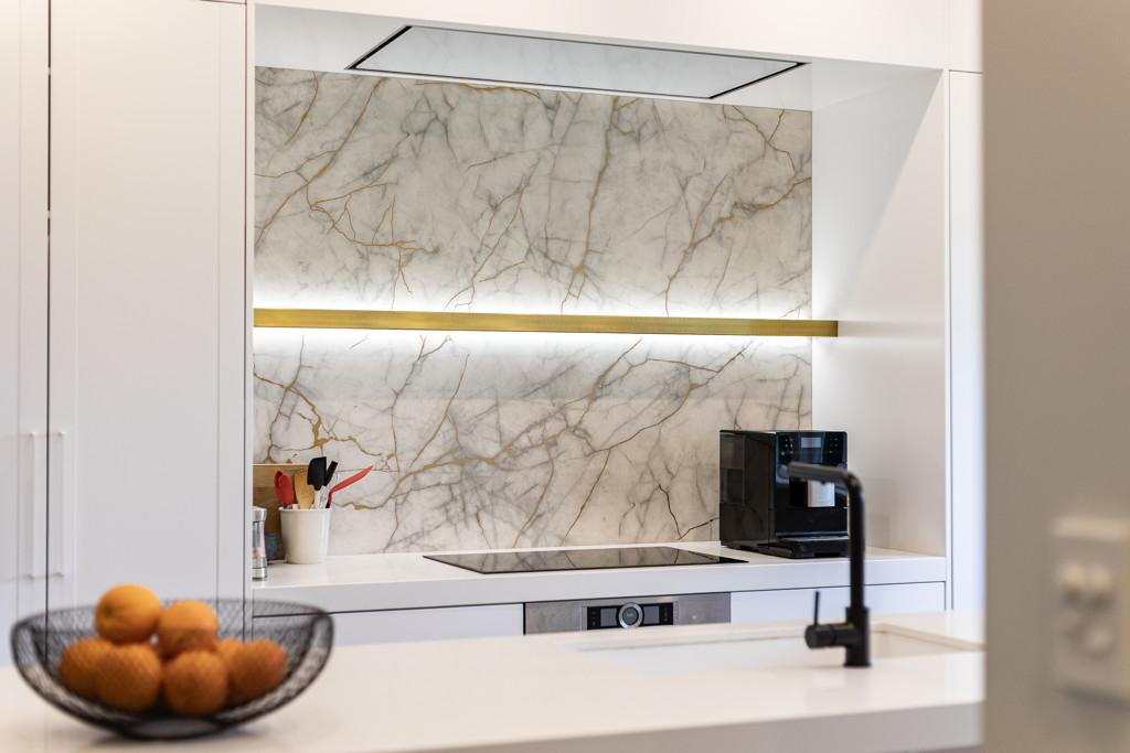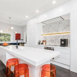 • Designer eat-in kitchen by Kitchen Elements with premium appliances and Italian porcelain splashback with gold leaf