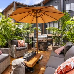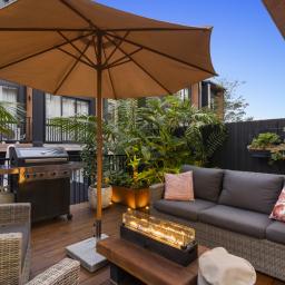 Step outside and you'll discover a thoughtfully landscaped backyard that feels more like a private retreat than a typical townhouse setting. Mature planting, tropical greenery, and feature lighting create a lush, resort-style atmosphere, ideal for evening entertaining, quiet downtime, or weekend barbecues. While positioned in a connected community, clever landscaping and layout provide a sense of separation and calm.