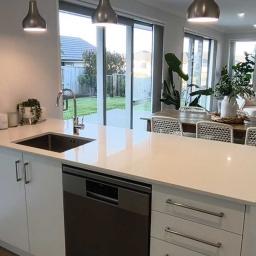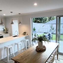 Contemporary design brick and tile with spacious open-plan main living area and modern kitchen with stone benchtops.