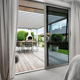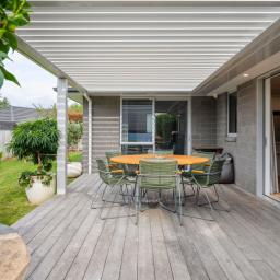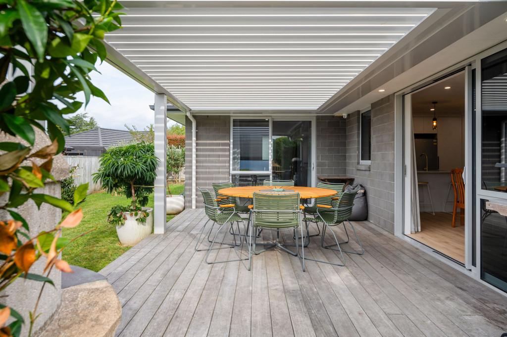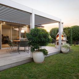 From the moment you walk in, the flow draws you straight outdoors. Open-plan living spills effortlessly onto an expansive deck featuring a high-quality NZ Louvres louvre system with built-in rain sensors and a remote control, along with an outdoor pizza oven - the kind of space where Friday nights turn into homemade pizza evenings with friends, a glass of wine in hand, kids playing in the yard, and laughter carrying long after the sun goes down. With the touch of a button, the louvre adjusts to the weather, so entertaining is effortless year-round. Add the outdoor fireplace and you have a setting that works just as well in winter as it does in summer.