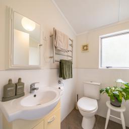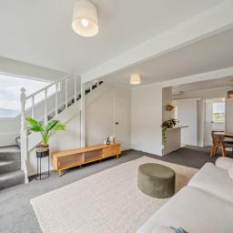 Upstairs are two bedrooms with built-in wardrobes and a family bathroom with shower over bath, WC and vanity. Additional features include a heat pump, electric hot water and the luxury of being mostly double glazed.
