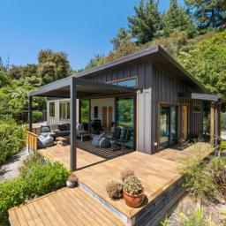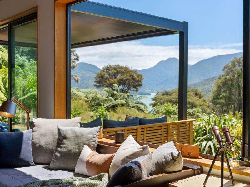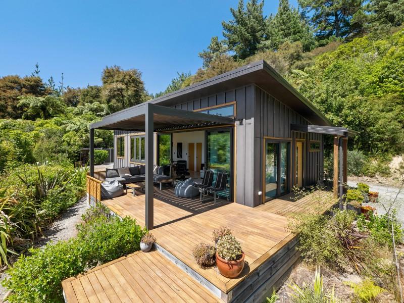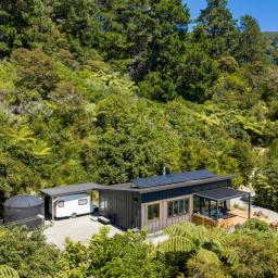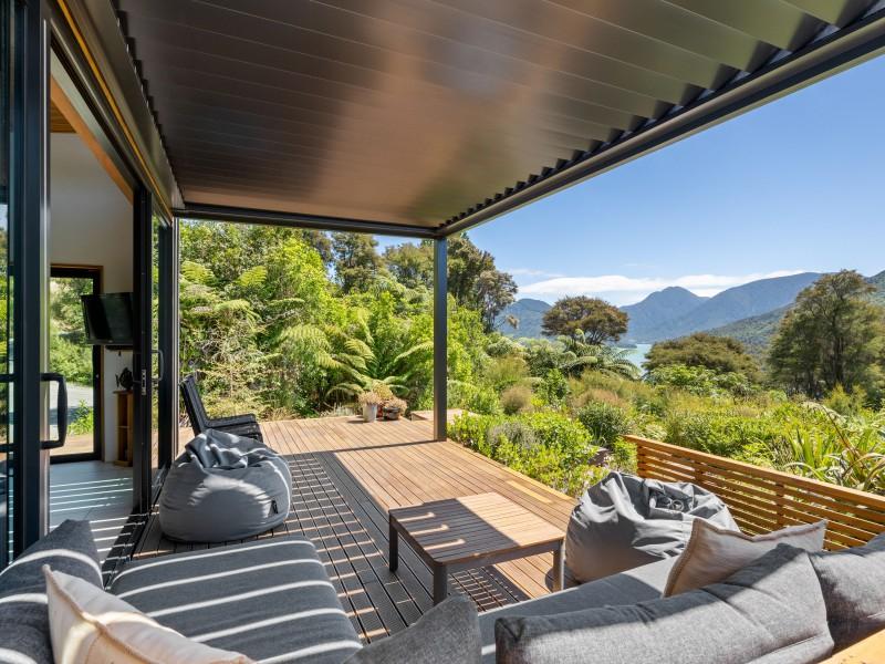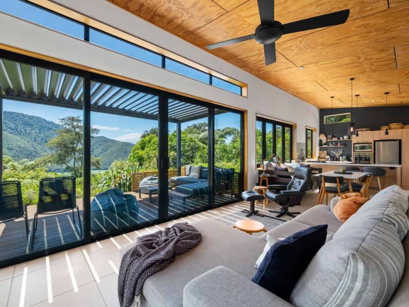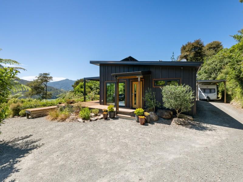 Tucked into native bush and bathed in northern sun, a modern, fully furnished two-bedroom eco home offers a rare chance to live lightly on the land while enjoying the very best of the Marlborough Sounds lifestyle.