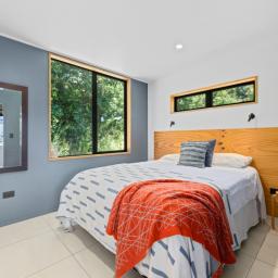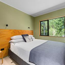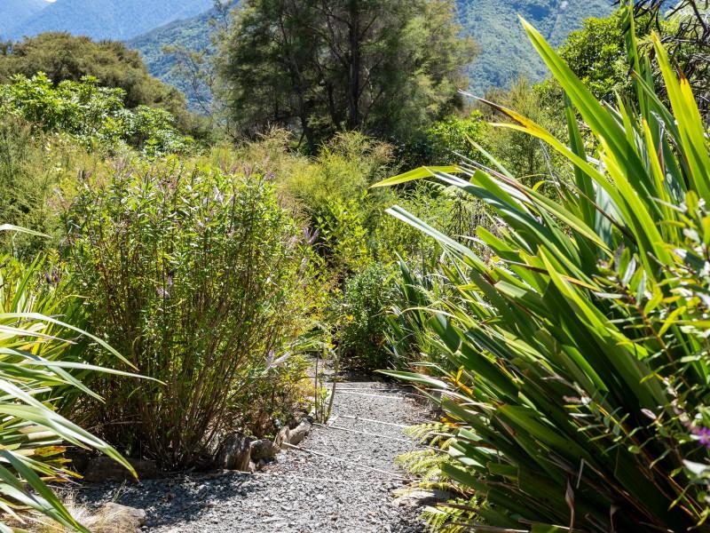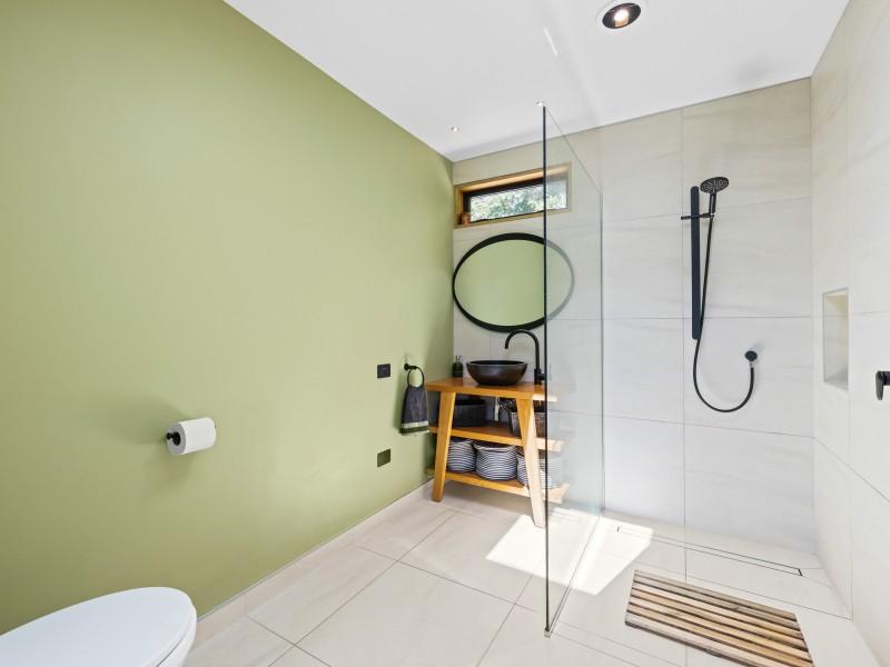 Set across two private acres, the property has been carefully stewarded with a strong commitment to environmental restoration. Exotic species have been removed, an active trapping programme is in place, and the surrounding bush has been nurtured to encourage native birdlife — creating a peaceful, regenerative environment that feels both alive and protected.