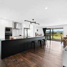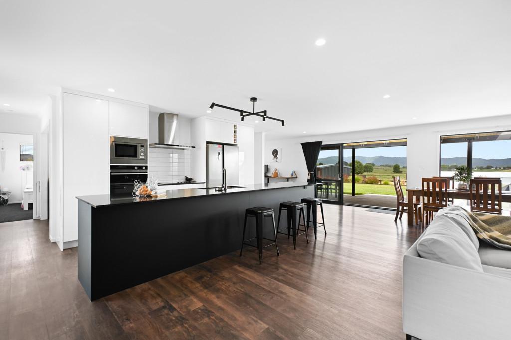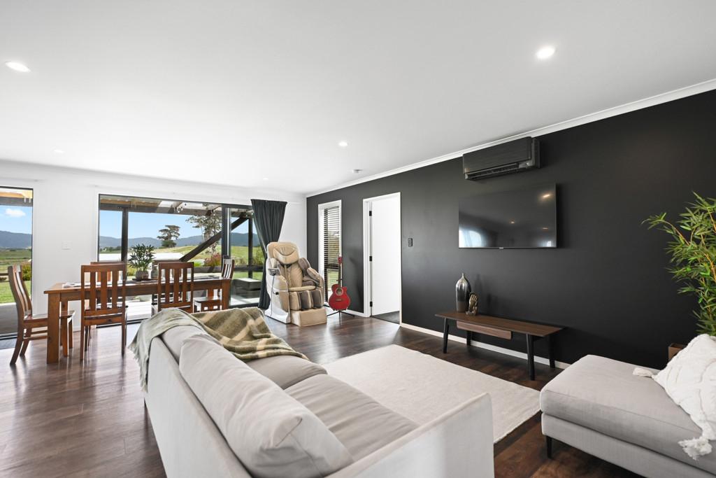 Large ranch sliders open seamlessly to the covered veranda, where you can relax and take in the breathtaking rural outlook across rolling farmland to the Hakarimata Range-an incredible setting for morning coffee or evening sunsets.