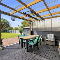 Outdoor living is a true highlight at this property. A private, fully fenced section offers excellent decking and entertaining spaces, complemented by a covered storage area currently used as a relaxed chill-out zone with extra fridges and seating. The low-maintenance grounds mean more time enjoying the coastal lifestyle and less time on upkeep.