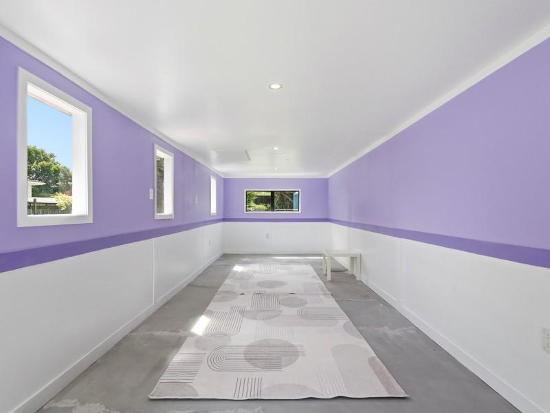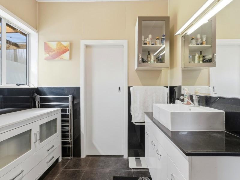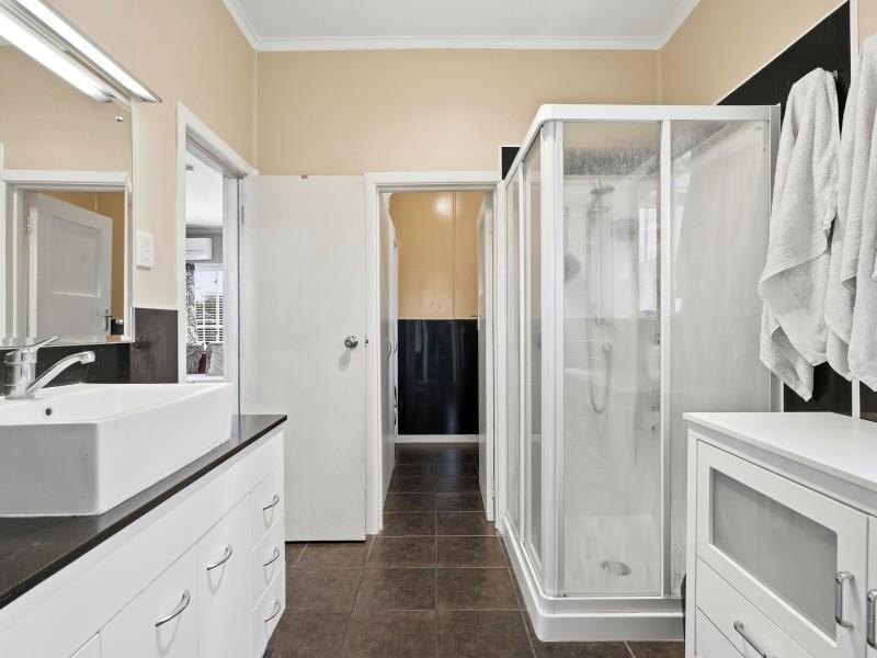 Two functional bedrooms, with the main bedroom featuring a walk-in wardrobe and ensuite-style access to the bathroom. The bathroom is also conveniently accessible from the living area and via the back deck, making it perfect for guests, especially those enjoying the fully insulated 26sqm sleepout or hobby room tucked away outdoors.